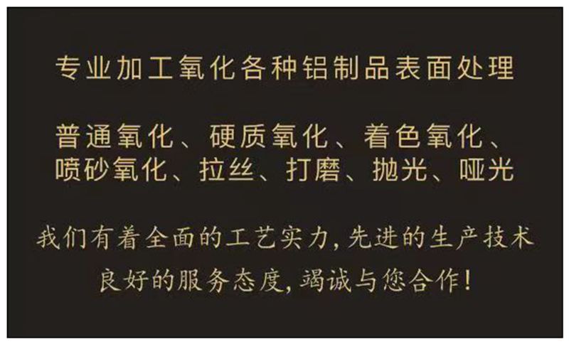 主營(yíng): 專業(yè)加工氧化各種鋁制品表面處理