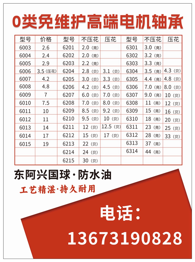 0類免維護高端電機軸承